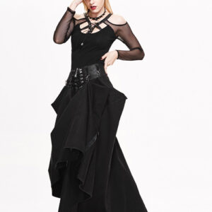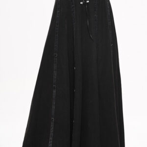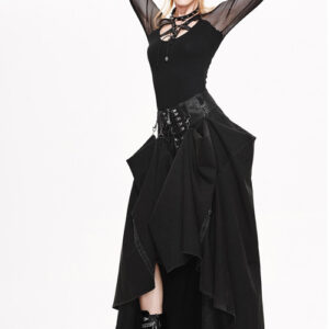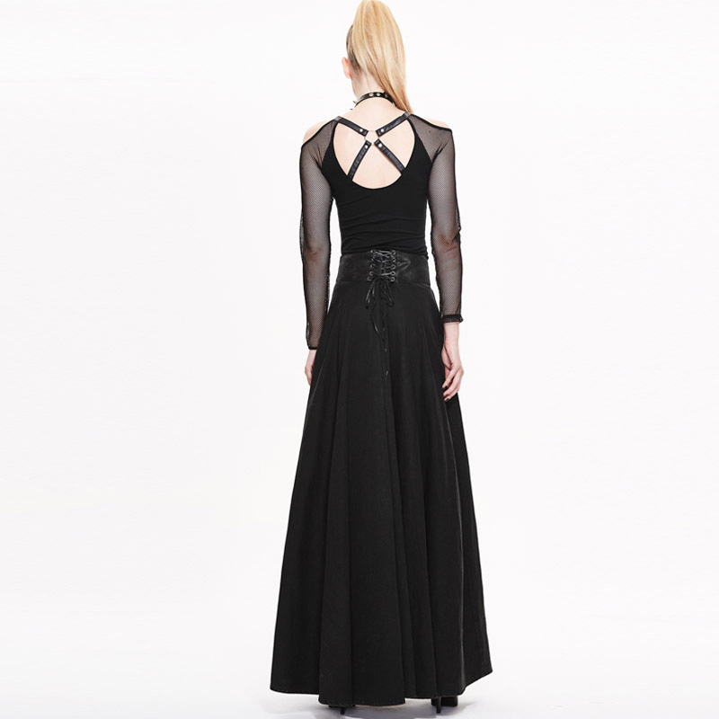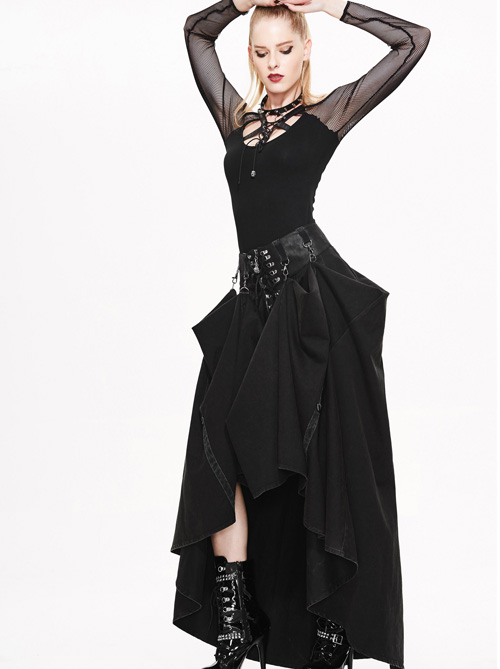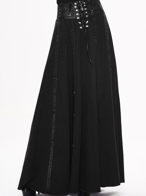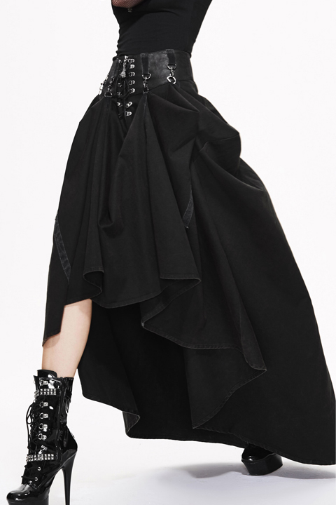 Long strait skirt can be adjusted to short dress anytime to change style and look Twill woven fabric Adjustable waist is made of heat seal backing fabric Comes with D buckle and lobster buckle belt with rivets and mini laces Inner zipper can be opened Adorned with rivets and lace up decorations 95% cotton 5% spandex Great all season skirt Please refer to attached measurement chart to choose best size