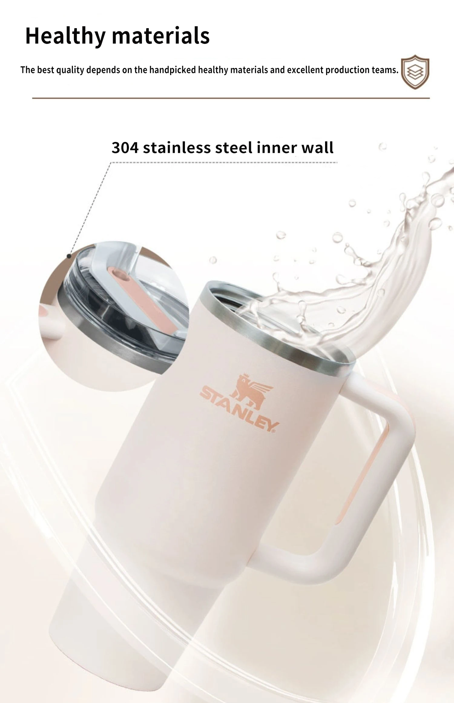 - ADVANCED LID CONSTRUCTION: Whether you prefer small sips or maximum thirst quenching, Stanley has developed an advanced FlowState lid, featuring a rotating cover with three positions: a straw opening designed to resist splashes with a seal that holds the reusable straw in place, a drink opening, and a full-cover top for added leak resistance. We’ve also included an ergonomic, comfort-grip handle, so you can easily carry your ice-cold water to work, meetings, the gym or trips out of town.